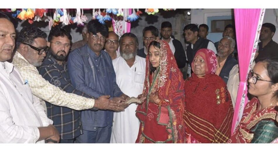 एफआर न्यूज. चूरू | जिले में सांप्रदायिक सद्भाव की एक मिसाल सामने आई। गढ़ के पास वार्ड नंबर 41 में निवासी नन्दनी राजोतिया के विवाह समारोह में मुस्लिम तेली समाज के युवाओं ने भाई का फर्ज निभाते हुए कन्यादान में एक लाख इक्कीस हजार रुपये की आर्थिक सहायता प्रदान की। नन्दनी राजोतिया के पिता परमेश्वर लाल राजोतिया का निधन हो चुका है और परिवार में कोई पुत्र भी नहीं है। माता भी बीमार हैं। ऐसी विषम परिस्थिति में मुस्लिम समाज के युवा आगे आए और धर्म-जाति की सीमाओं से परे जाकर मानवता का परिचय दिया। विवाह के शुभ अवसर पर मुस्लिम तेली समाज के रफीक चौहान, असलम एमआर, रफीक राजगढ़िया, इस्माईल चौहान, मंगतु भाटी, इस्माईल भाटी, गुलाम हुसैन गौरी, याकुब राजगढ़िया, एडवोकेट सद्दाम हुसैन, हारून मलनस मारको और सलीम चौहान ने नन्दनी को चुंदड़ी ओढ़ाकर एक लाख इक्कीस हजार रुपये कन्यादान स्वरूप भेंट किए। यह घटना समाज में धार्मिक सौहार्द और मानवीय मूल्यों को मजबूत करने वाली साबित हुई है। वो भी ऐसे समय में जब सांप्रदायिक तनाव की खबरें आम हैं।