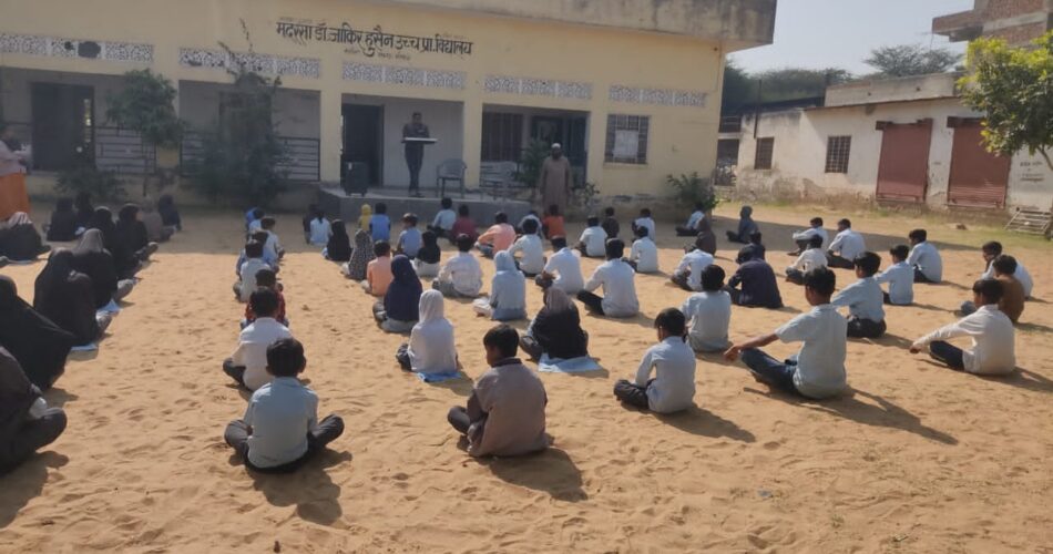 मदरसा डॉ. जाकिर हुसैन में मंगलवार को संविधान दिवस बड़े सम्मान और उत्साह के साथ मनाया गया। कार्यक्रम की शुरुआत राष्ट्रगान के बाद संविधान प्रस्तावना के सामूहिक वाचन से हुई। इसके बाद मदरसे के हेडमास्टर ने सभी बच्चों को संविधान की शपथ दिलाई और उन्हें भारतीय लोकतंत्र की मूल भावना, अधिकारों और कर्तव्यों के बारे में विस्तृत जानकारी दी।