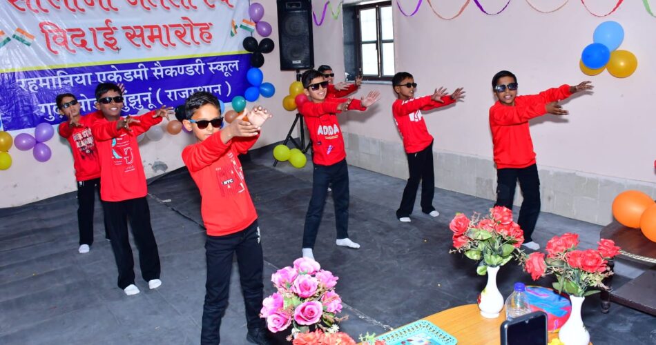 फ्राइडे संवाद. झुंझुनूं। रहमानिया एकेडमी में सालाना जलसा और विदाई समारोह धूमधाम से आयोजित किया गया। कार्यक्रम के मुख्य अतिथि प्रख्यात शिक्षाविद मूल सिंह झाझड़िया रहे। समारोह में छात्र-छात्राओं ने रंगारंग सांस्कृतिक और सामाजिक कार्यक्रम प्रस्तुत किए, जिन्हें दर्शकों ने खूब सराहा। कार्यक्रम में कमेटी सदस्य, अभिभावक, स्कूल स्टाफ और अनेक गणमान्य लोग उपस्थित रहे। कार्यक्रम का संचालन जमील खान ने किया। सचिव बरकत अली खान और डायरेक्टर जावेद इकबाल सिद्दीकी ने सभी अतिथियों का स्वागत किया और छात्रों के उज्ज्वल भविष्य की कामना की। समारोह विद्यार्थियों के लिए यादगार और प्रेरणादायक रहा।