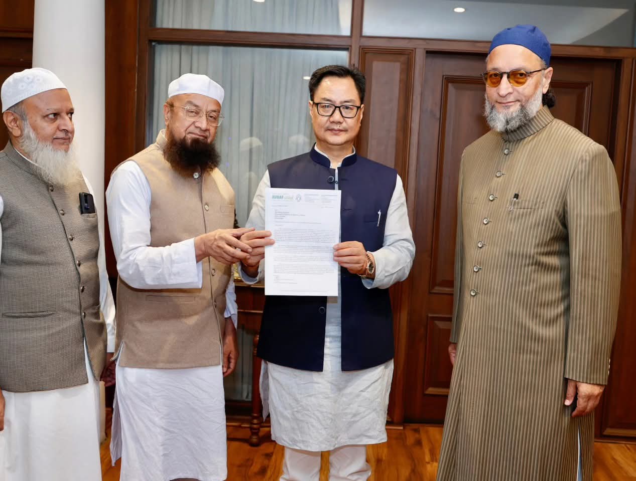 एफआर न्यूज. नई दिल्ली | केंद्रीय अल्पसंख्यक कार्य मंत्री किरेन रिजिजू ने अपने आवास पर हैदराबाद के सांसद असदुद्दीन ओवैसी, मालेगांव के विधायक मुफ्ती इस्माइल और महाराष्ट्र के अधिवक्ता मोमिन मुजीब से मुलाकात की। प्रतिनिधिमंडल ने विशेष रूप से उम्मीद पोर्टल पर पंजीकरण की समय सीमा बढ़ाने की याचिका सौंपी। मालूम हो कि वक्फ जायदादों में आने वाले मदरसों, मस्जिदों, दरगाहों, खानकाह और वक्फ के भूमि और भवन को भारत सरकार के उम्मीद पोर्टल पर रजिस्ट्रेशन करवाने की समय सीमा 5 दिसंबर निर्धारित है। मंत्री ने प्रस्तावों पर सकारात्मक विचार का आश्वासन दिया।