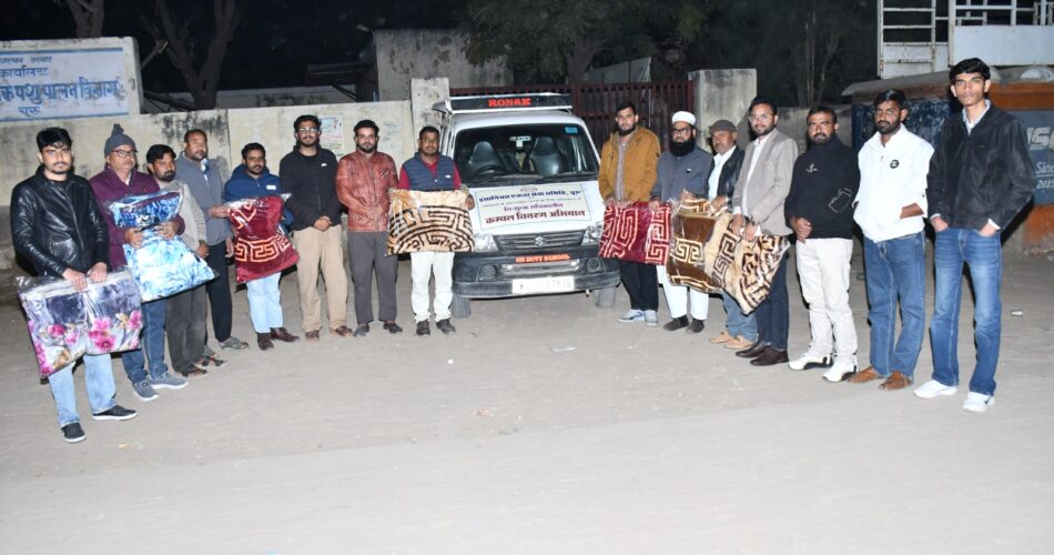 फ्राइडे संवाद. चूरू | बुधवार देर शाम को जिला मुख्यालय पर स्थित नए बस स्टेण्ड इंसानियत एकता सेवा समिति द्वारा पिछले 37 दिनों से चल रहे रात्रिकालीन कम्बल वितरण अभियान का समापन समिति व्यवस्थापक इंजीनियर जाफर खान के नेतृत्व में ज़रूरतमंद लोगों को कम्बल वितरित कर किया गया। कार्यक्रम की अध्यक्षता समिति के सहायक सचिव डॉ शाहरुख खान आसलसर ने की। इस अवसर पर समिति संस्थापक करामत खान ने बताया कि 37 दिनों तक चले रात्रिकालीन कम्बल वितरण अभियान में चूरू सहित शेखावाटी क्षेत्र के सभी शहरों व कसबों में ज़रूरतमंद लोगों को 405 कम्बल वितरित किए गए। कार्यक्रम की अध्यक्षता कर रहे डॉ शाहरुख खान ने कहा कि जरूरतमंद लोगों की मदद करना सबसे बड़ा नेक और पुण्य का कार्य है। समाजसेवी जाकिर खान केके ने कहा कि सामाजिक सरोकार में योगदान देना हम सभी की नैतिक जिम्मेदारी है। इस दौरान समिति के उपकोषाध्यक्ष मो.सलमान खान, निदेशक सदस्य बिलाल खान, संरक्षक सदस्य गुलाम हुसैन गौरी, समाजसेवी हमीद खान रिसालदार, डॉ. अखतर खान, जावेद खान, इमरान खान, हसन खान, अबरार खान, जाकिर अली खान, सोयल खान, रेहान खान, समीर खान, जाहिद खान आदि मौजूद रहे। समिति के सोशल मीडिया प्रभारी सुलेमान मनीहार ने सभी का आभार जताया।