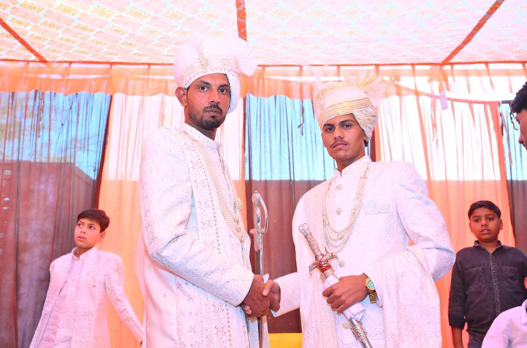 फ्राइडे संवाद. चूरू। सहनाली निवासी यासीन खान के बेटे इनायत खान ने अपने साहिबजादे जावेद खान एवं इकबाल खान के साहबजादे सॉयल खान की शादी माण्डेला निवासी नवाब खान की दोनों साहिबजादी के साथ बिना दहेज और फिजूलखर्ची के अत्यंत सादगी से संपन्न कराई। यह विवाह मात्र एक रुपया और एक नारियल में किया गया, जो कायमखानी समाज के लिए एक मिसाल बन गया है।